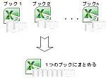 2)できあがったエクセルブックを複数ブックのシートまとめで1つのブックにまとめます。